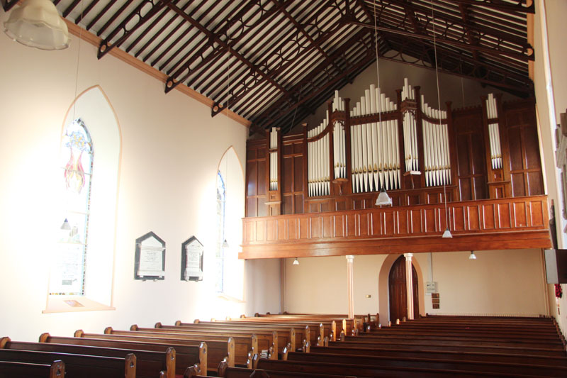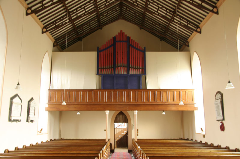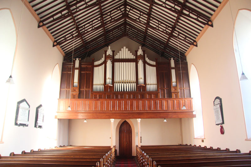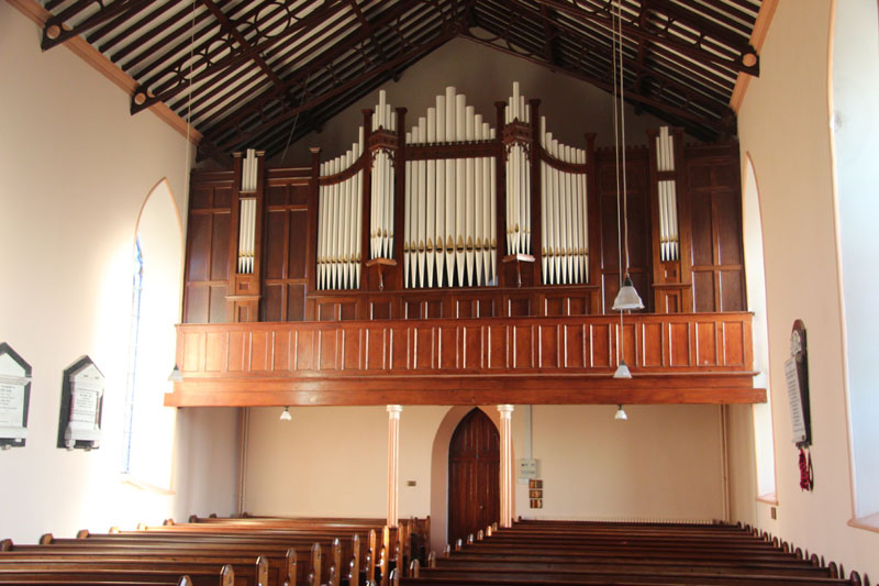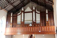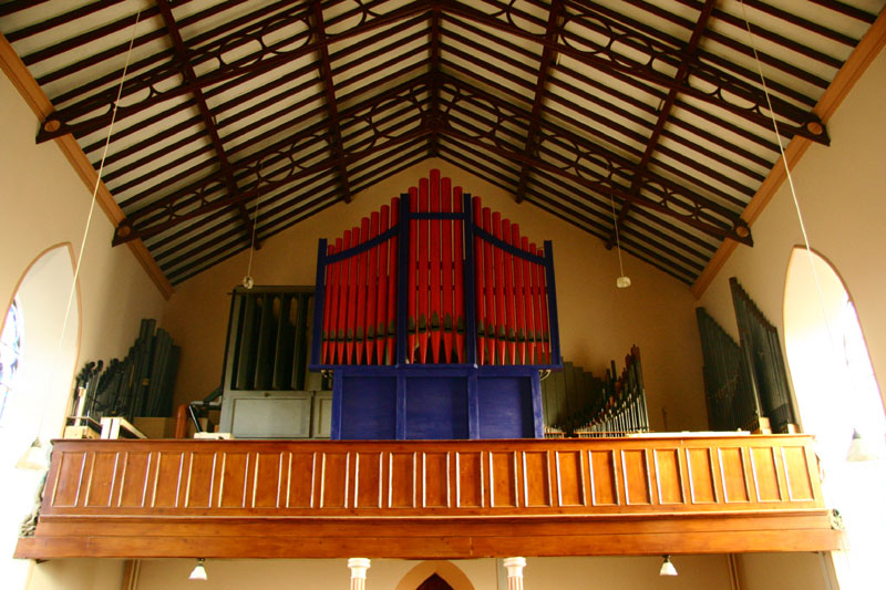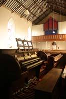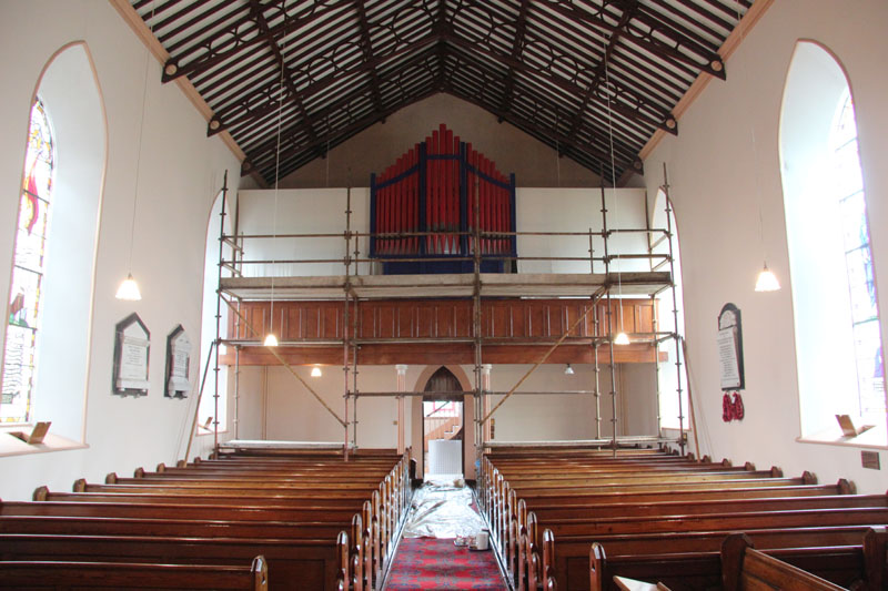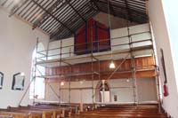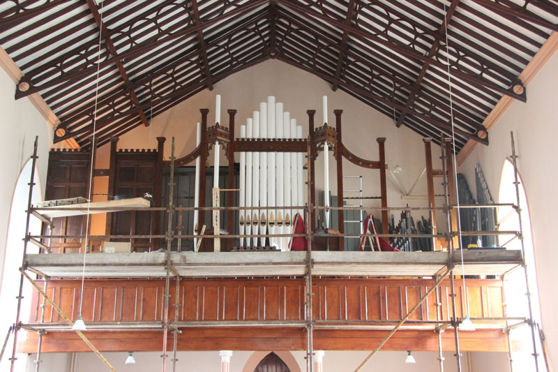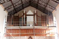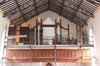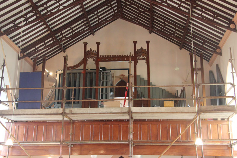 Temporary case by another organbuilder installed 2007 (below) and the construction of the permanent case in 2011